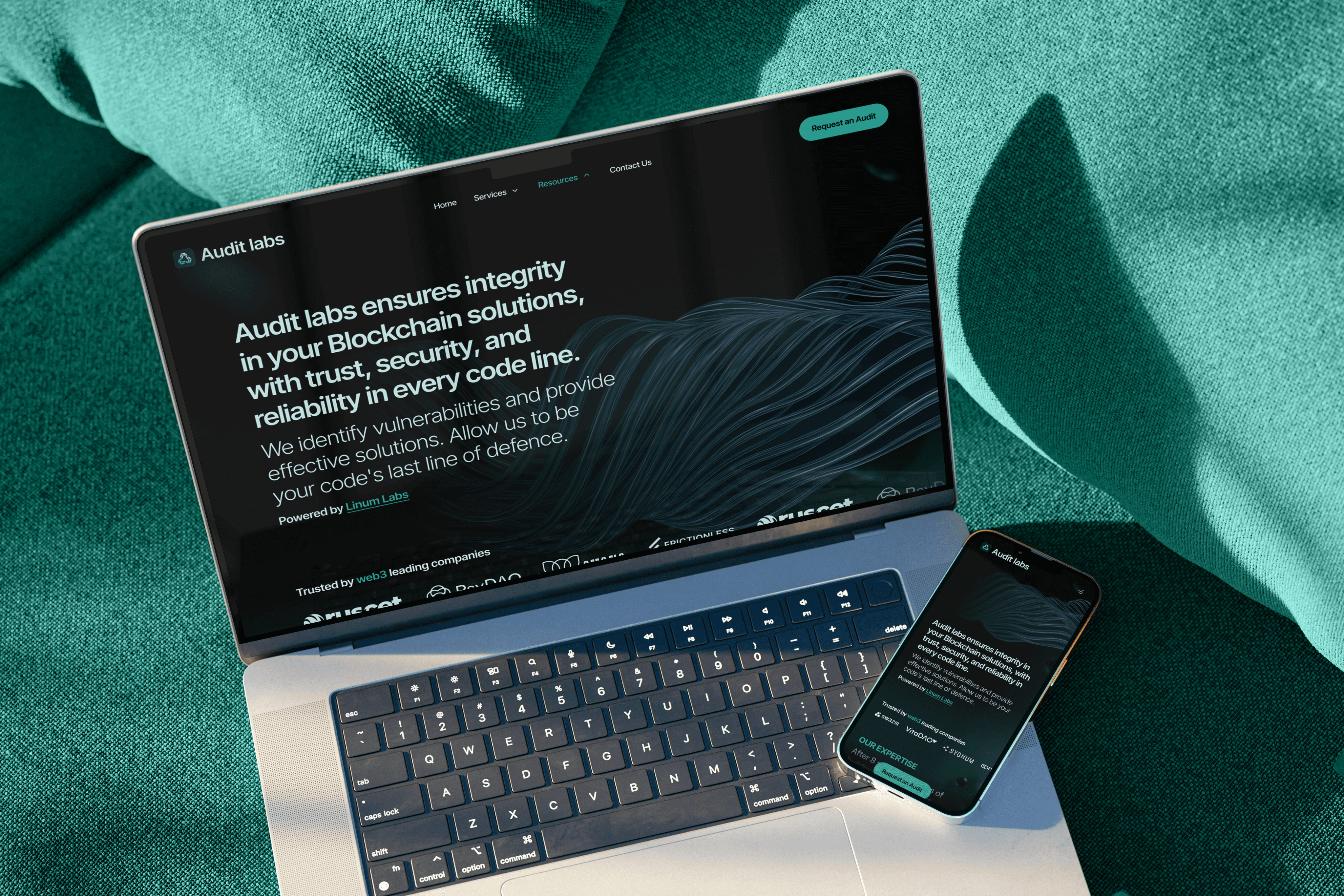 A collaboration with Tomorrow Labs where we designed and developed the website for Audit Labs, a Web3 security platform spun out of Linum Labs. The goal was to position Audit Labs as a trusted provider of smart contract audits and blockchain assessments. Using a dark theme, bold type, and clean layout to present complex services clearly and professionally.